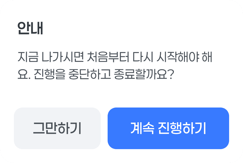 각 단계에서 필요한 정보만 명확하게 제시하여 고민 없이 다음 단계로 진행할 수 있도록 했습니다.