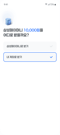 별도의 신규 계좌 개설이나 카드 발급 과정 없이, 삼성월렛 내에서 오픈뱅킹을 통해 원하는 계좌를 연결하면 즉시 결제가 가능하게 했으며, 자동으로 적립된 포인트는 다시 결제에 사용할 수 있는 순환 구조를 통해 사용할수록 실질적인 혜택을 느낄 수 있도록 했습니다.